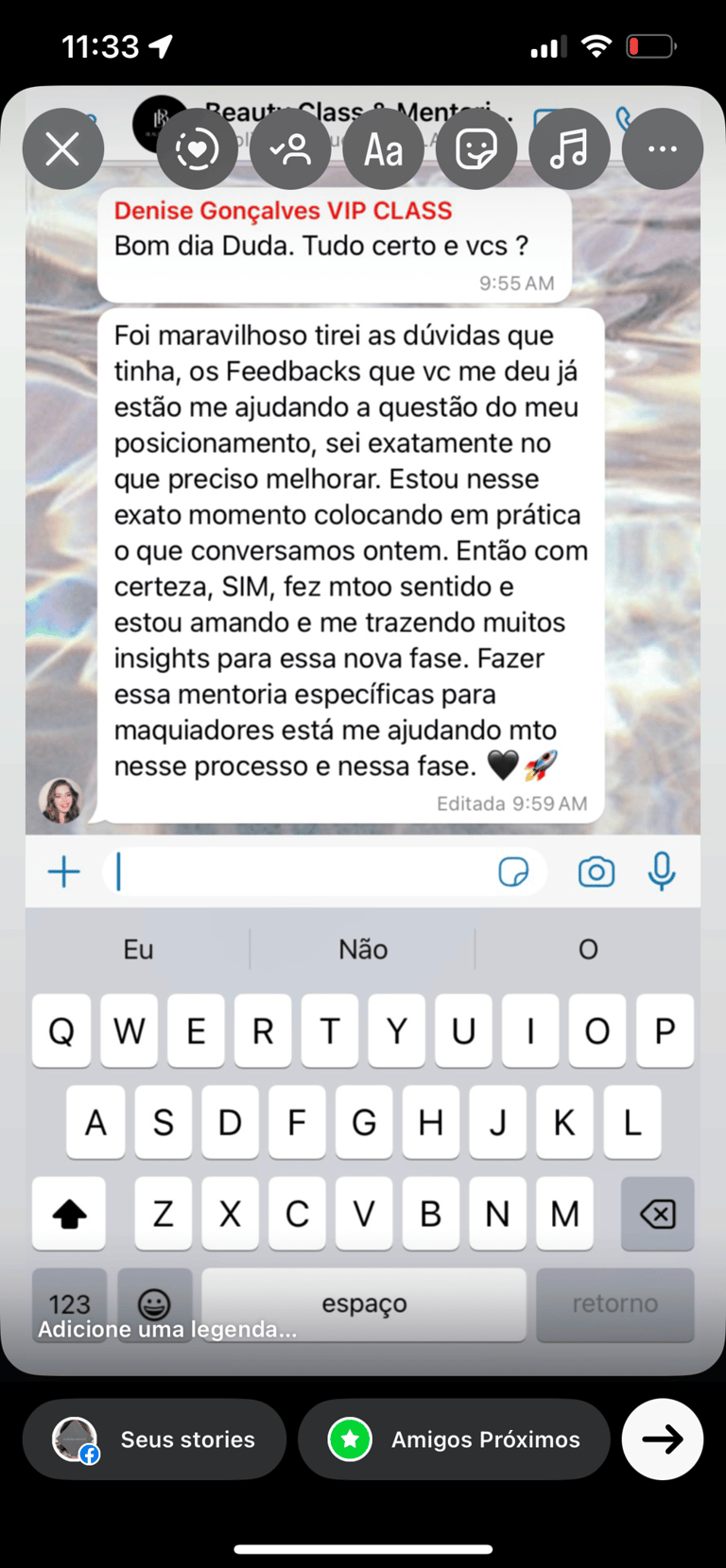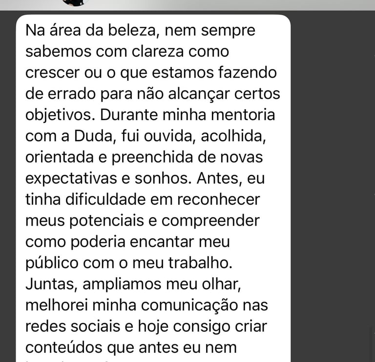 Após anos de dedicação e muito aprendizado na área da beleza, me especializei em construção de marcas, sejam elas pessoais ou corporativas, e levo este conhecimento junto a experiência de anos de carreira a profissionais que desejam elevar o nível e ter um negócio beauty de alto valor.